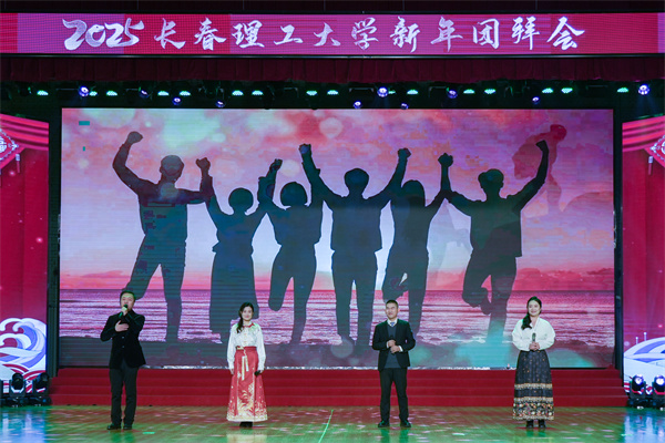 校党委书记张宝宗,校党委副书记、校长郝群,中国工程院院士、校学术委员会主任姜会林,校党委副书记刘瑛,校党委副书记、纪委书记吴健,校党委副书记丁佳,副校长付跃刚、王超、董科研,与学校老领导杨玉新、杨华民,离退休老同志、师生代表欢聚一堂,共同迎接新年的到来。