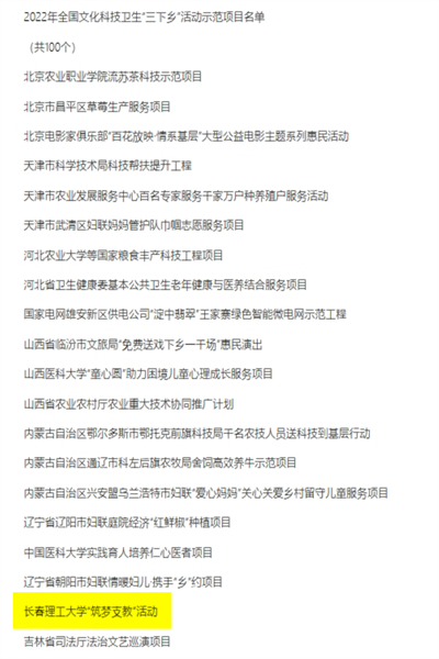 “筑梦支教”活动曾获长春市大中专学生暑期“三下乡”社会实践活动优秀团队、2022年度吉林省优秀志愿服务项目等荣誉。