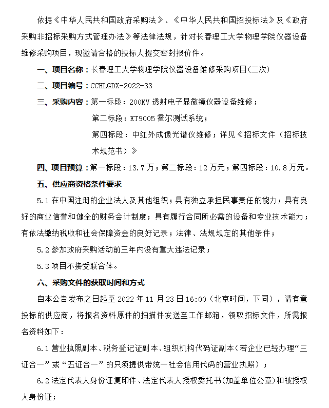 MK平台物理学院仪器设备维修采购项目(二次) 竞争性谈判公告