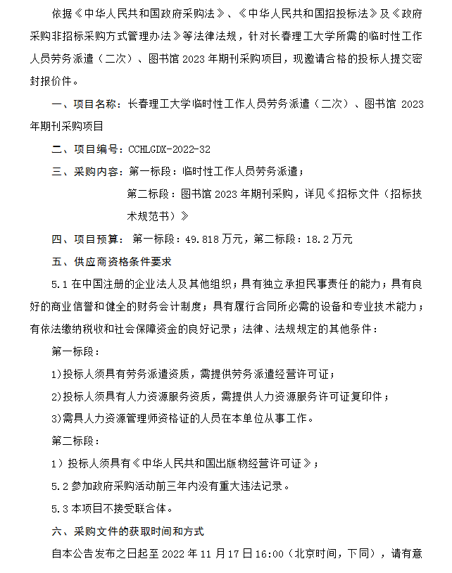 MK平台临时性工作人员劳务派遣(二次)、图书馆2023年期刊采购项目竞争性谈判公告