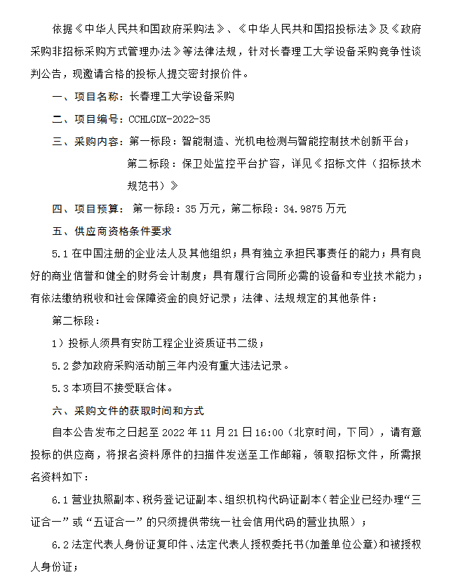 MK平台设备采购竞争性谈判公告